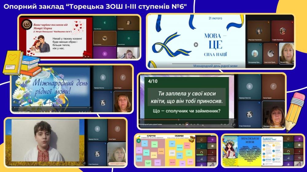 Щороку 21 лютого світ відзначає Міжнародний день рідної мови, проголошений ЮНЕСКО з метою збереження мовного різноманіття та підтримки багатомовності. Це свято нагадує нам про надзвичайну цінність рідного слова — того, що ми чуємо з дитинства, яким вимовляємо перші слова, яким думаємо, мріємо й любимо. Цього року в Опорному закладі «Торецька загальноосвітня школа І-ІІІ ступенів №6» Торецької міської військово-цивільної адміністрації Бахмутського району Донецької області було проведено одразу декілька заходів, присвячених цьому святу: виховні години, вікторина, диктант. У цей день варто замислитися: чи достатньо ми дбаємо про чистоту й красу свого мовлення? Чи передаємо любов до рідного слова дітям? Адже саме від нас залежить, якою буде мова завтра — живою, багатою, сильною. Любімо свою мову, говорімо нею з гордістю та серцем. Бо мова — це душа народу, і поки вона живе — живе й народ.