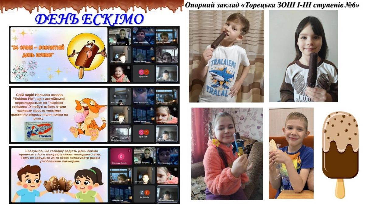 23 січня — День ескімо — веселе й смачне свято, яке дарує гарний настрій і дорослим, і дітям. Напередодні цієї дати в 3–4 класах Опорного закладу "Торецька ЗОШ І-ІІІ ступенів №6" пройшли години спілкування, присвячені улюбленому морозиву.