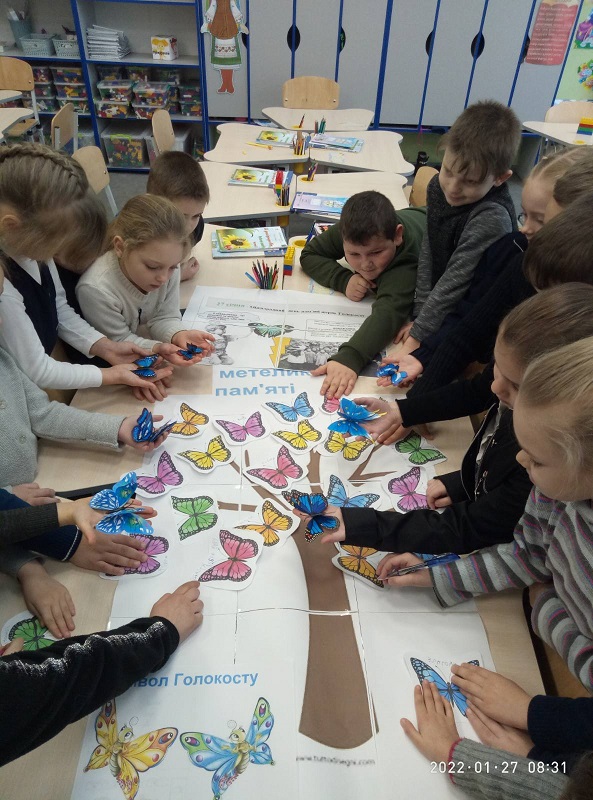 27 січня у всьому світі відзначають Міжнародний день пам’яті жертв Голокосту. Віддзеркалення зруйнованого дитячого світу можна побачити в написі маленького хлопчика із варшавського гетто: «…найжахливіше, що в гетто метелики не живуть!». Цей напис був датований 1943 роком. Відтоді метелик – це символ Голокосту. Метелик — символ душі, безсмертя, відродження і воскресіння, здатності до перетворень, до трансформації. Метелики — це символ радості, без якої не живуть.