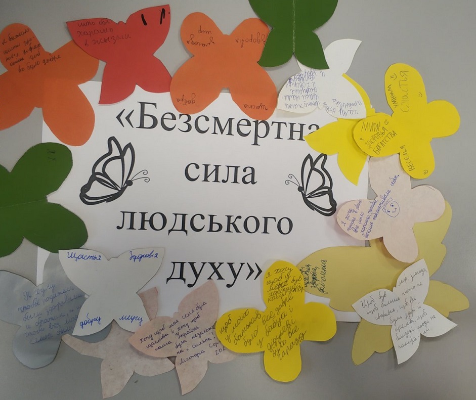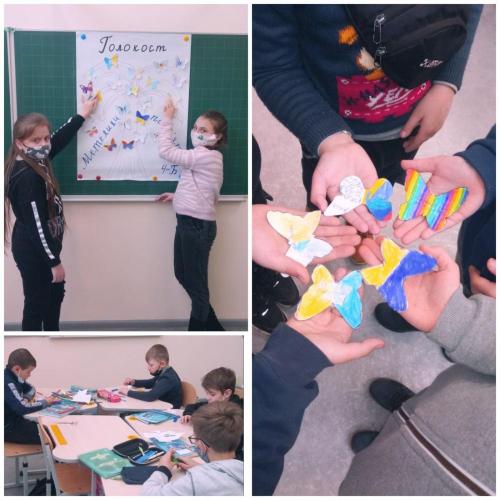 У цей сумний день в Опорному закладі «Торецька ЗОШ І-ІІІ ступенів №6» Торецької ВЦА відбулася акція «Метелики пам’яті». Здобувачі освіти прикріплювали своїх метеликів до символичних дерев життя з побажаннями миру майбутнім поколінням.