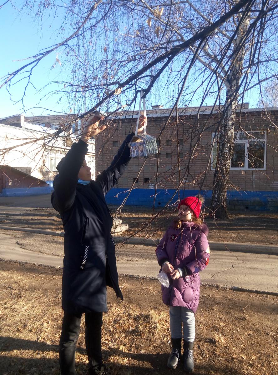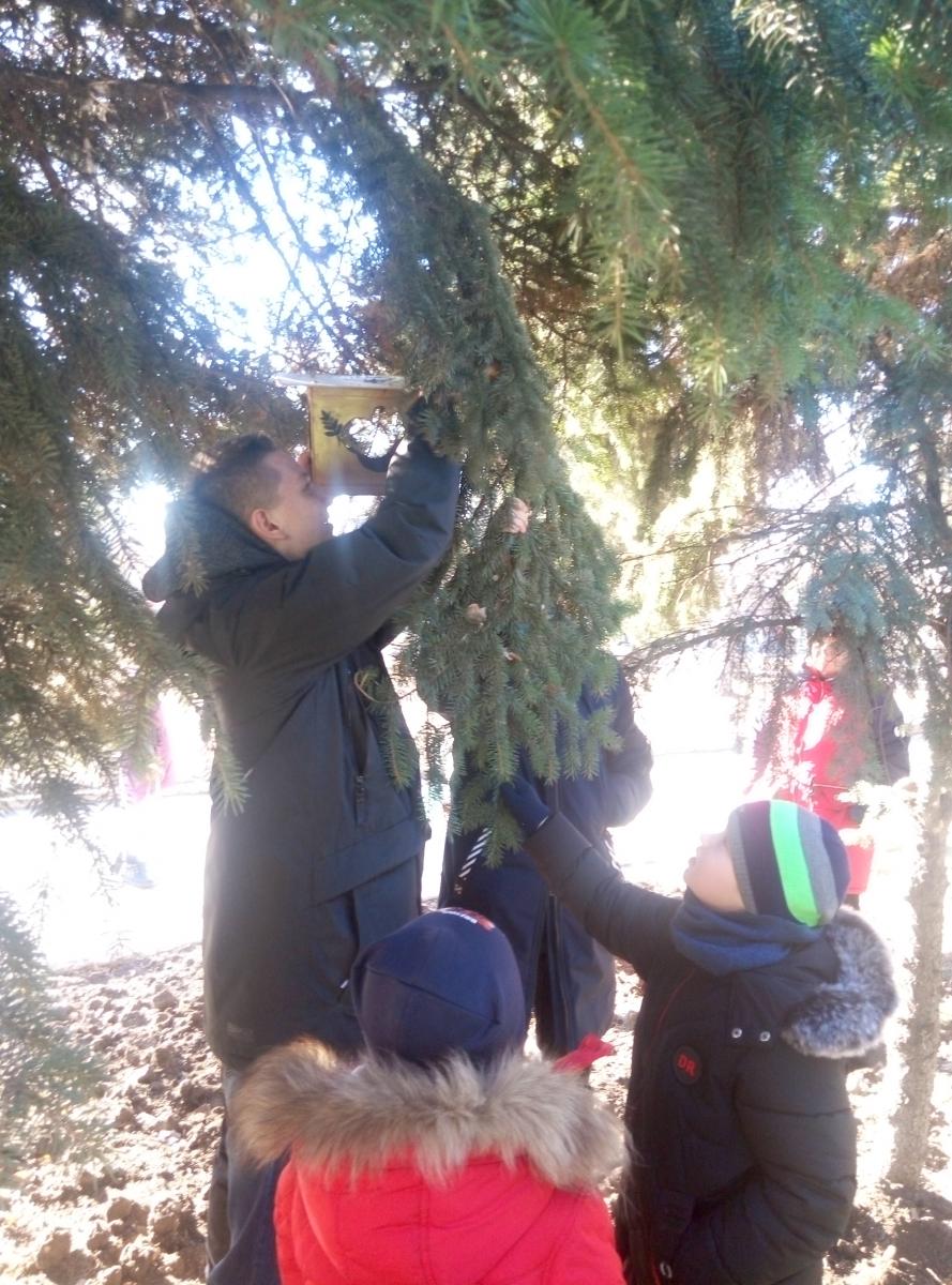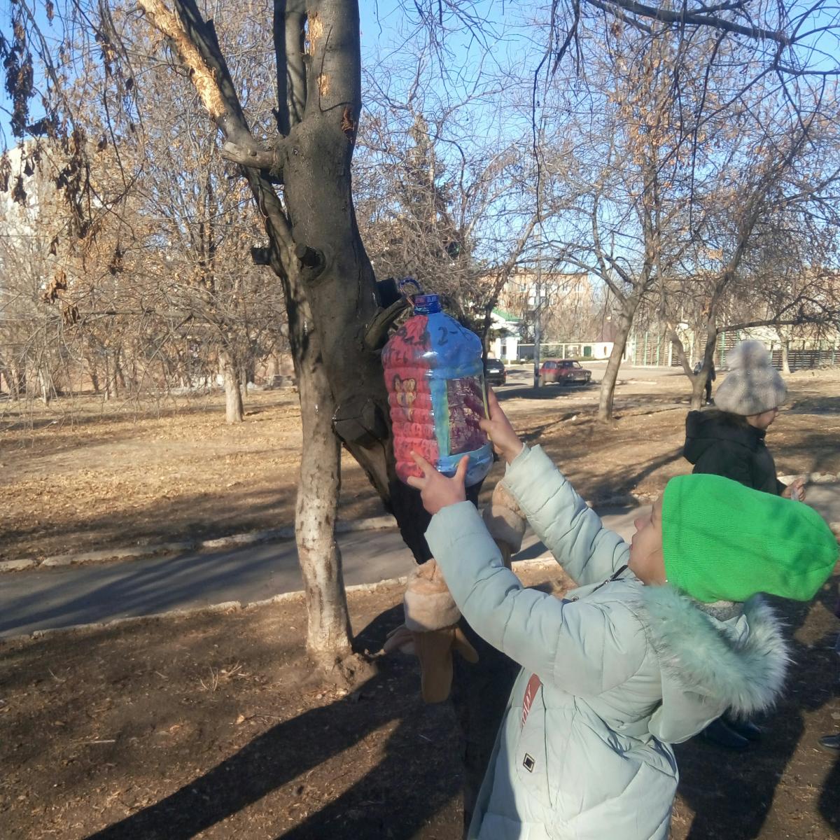 Згодом старшокласники допомогли розвісити годівнички на деревах біля школи. Заздалегідь діти вже заготовили корм для птахів, і тепер щодня будуть виходити на шкільне подвір’я, аби нагодувати пернатих.