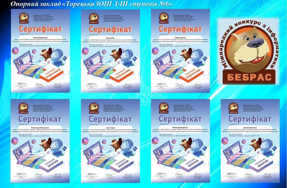За доброю традицією учні Опорного закладу "Торецька ЗОШ І-ІІІ ступенів №6" Торецької міської ВЦА Бахмутського району Донецької області стали учасниками Міжнародного конкурсу з комп'ютерної грамотності "Бебрас - 2025".