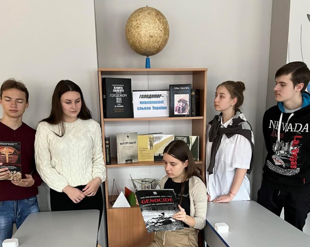 Сьогодні ми говоримо про минуле задля майбутнього, адже безпам’ятність породжує бездуховність, котра перекреслює історію нації, паплюжить традиції й руйнує соціокультурну самобутність народу. З нагоди відзначення пам’ятної для українського народу дати було проведено калейдоскоп історії «Гірка пам’ять» для учнів 1-11 класів. Старшокласників було запрошено на урок-реквієм «Голодомор – невиплакані сльози України..».